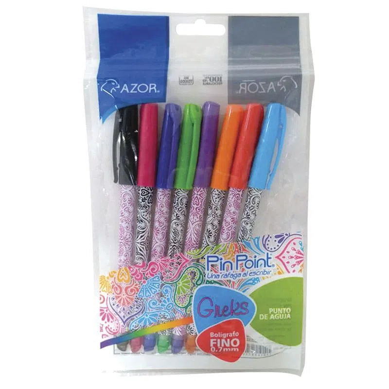Bolígrafo Punto Fino Greks Surtido Bolsa con 8 Piezas Pin Point