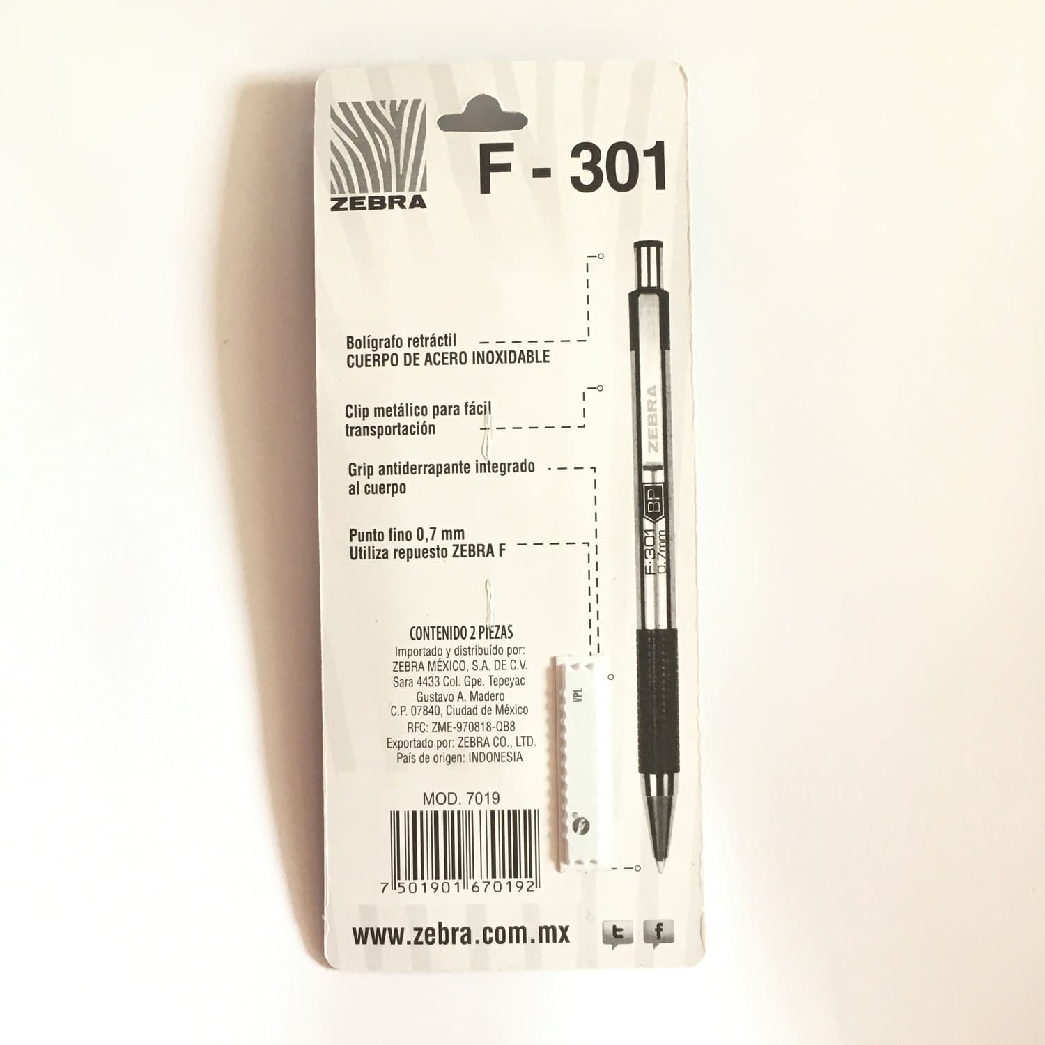 Bolígrafo Punto Fino Retractil Negro Blt F301 Zebra