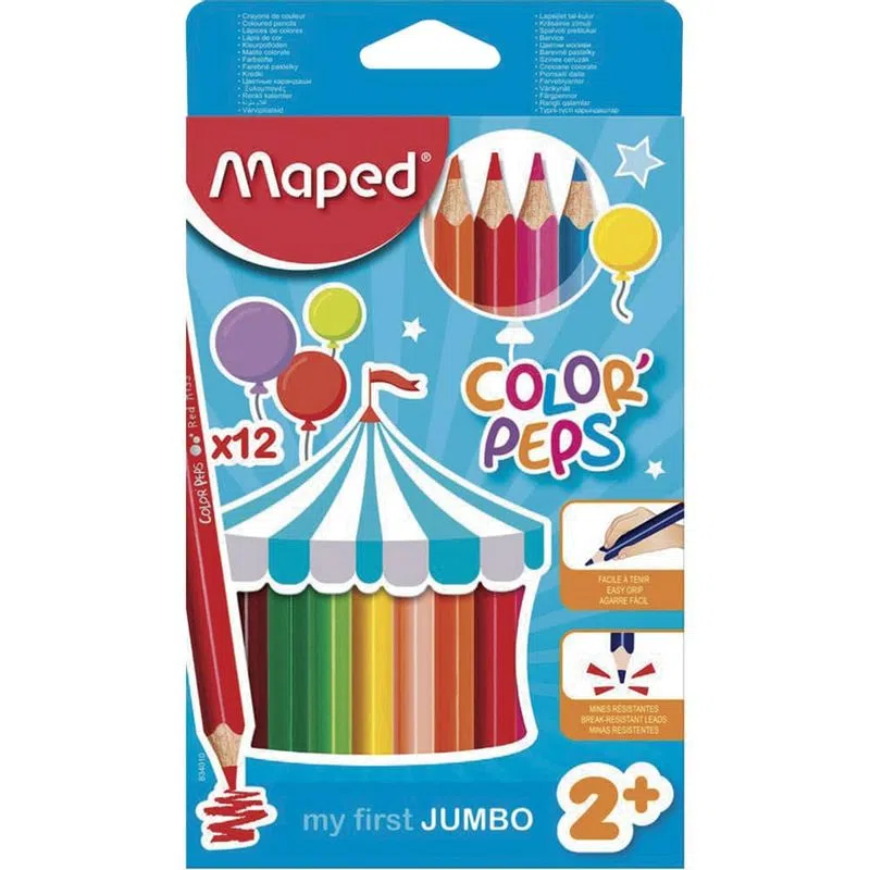 Lápices de Colores Cja C/12 Pzas. Largos Triangulares Jumbo Color Peps