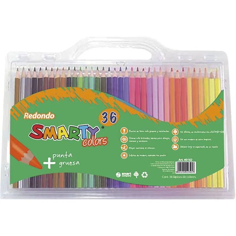 Lápices de Colores Cja C/36 Pzas. Largos Redondos Smarty 40102