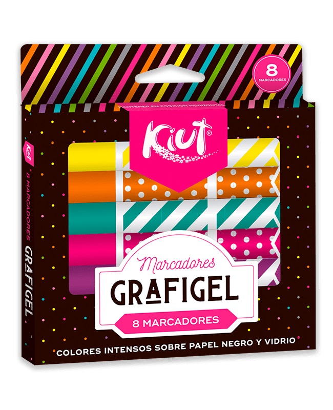 Blíster con marcadores grafigel. Toma tu color favorito y colorea sobre cualquier superficie, espera unos segundos hasta que se seque, ¡colorea sobre el primer color con otro marcador grafigel, espera unos segundos y verás el efecto! Ideal para pintar sobre papel negro, vidrio, acrílico, aluminio y otros materiales.