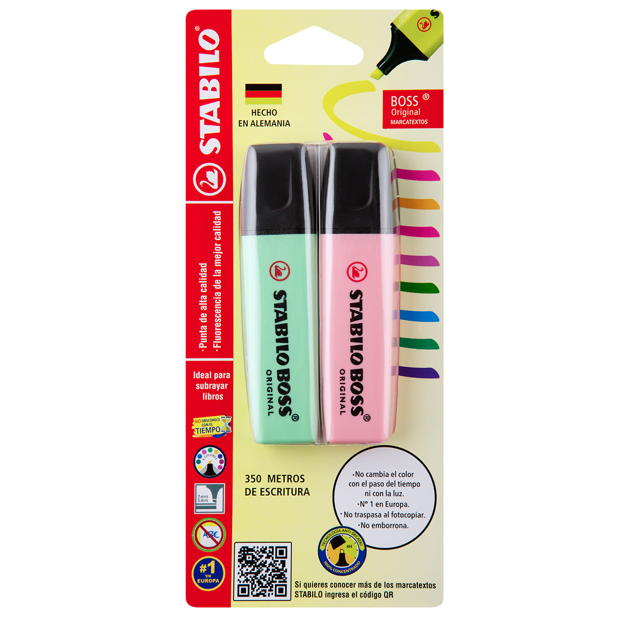 - Este blíster incluye 2 Marcatextos Stabilo Boss color rosa y menta, para que tus escritos tengan una presentación única.