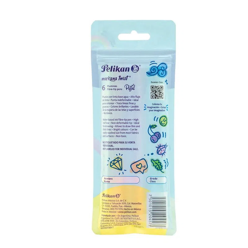 Marcador Para Colorear Delgado Estuche con 6 Piezas Markana Twist Pelikan